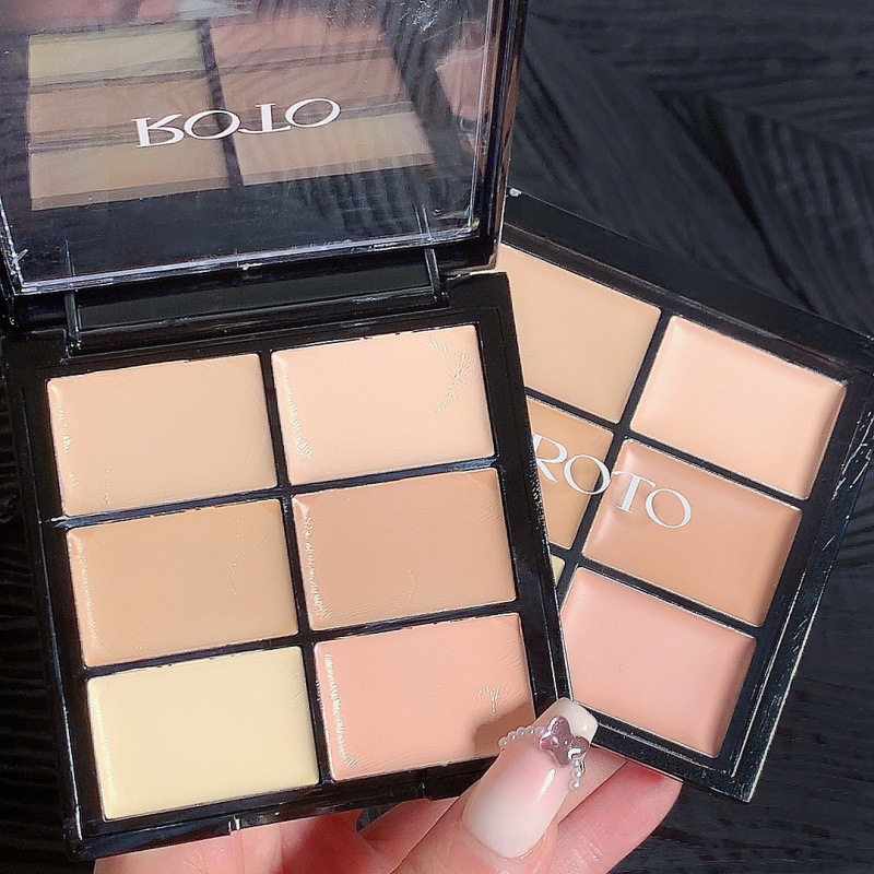 ROTO 6色コンシーラーパレットは、クマ、ニキビ跡、涙溝、シミをカバーし、マットなシャドウを明るくし、初心者向けのコンタリングパレットです。