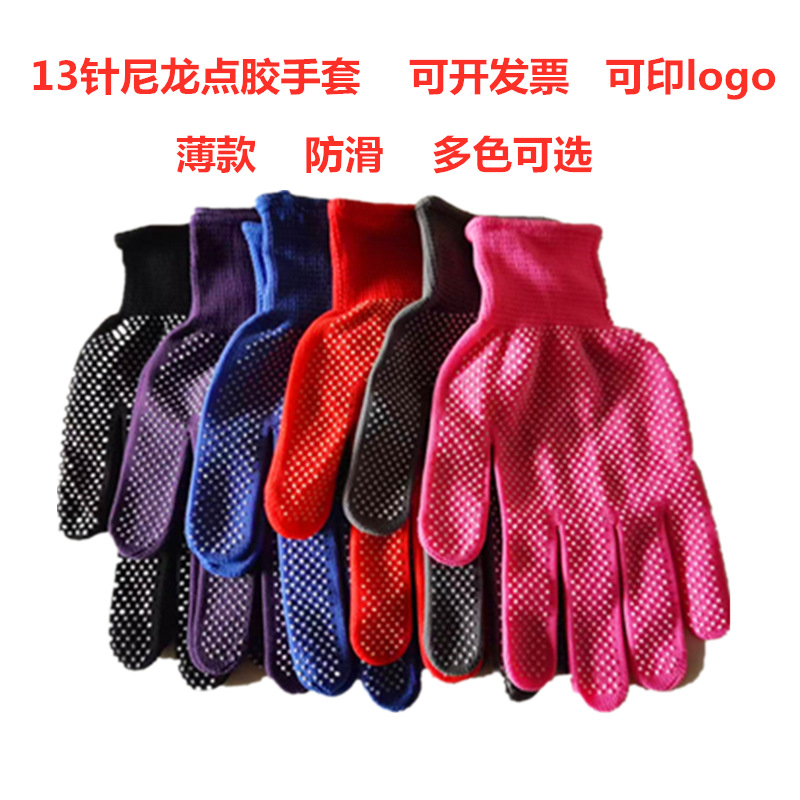 13針ナイロン点ゴム手袋滑り止め手袋包装通気作業防護点珠労働保護手袋印刷ロゴ