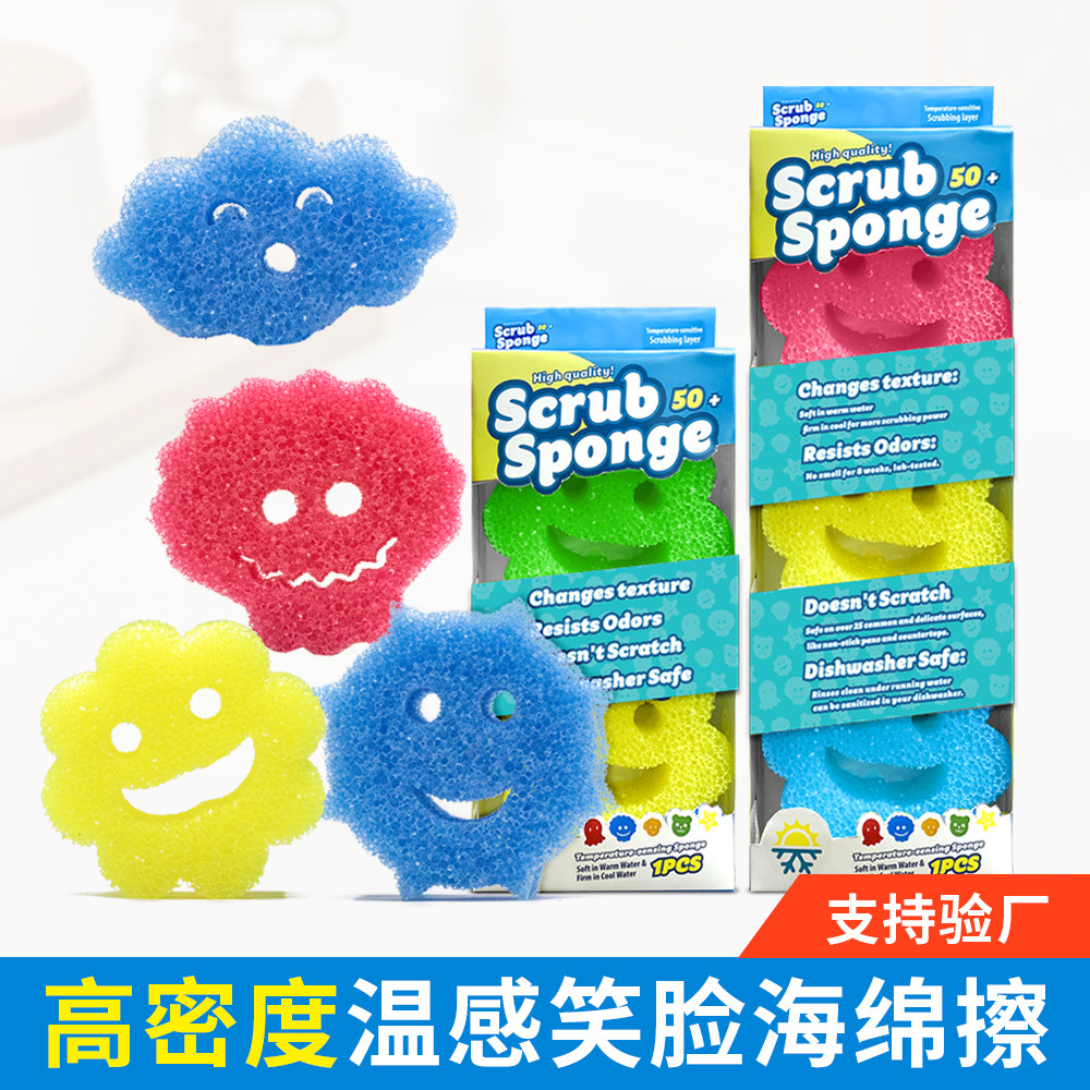 新しい温感スポンジ、マジックワイプ、キッチン掃除、食器洗い、鍋たわし、たわし、漫画温度感知スポンジ、食器洗い綿