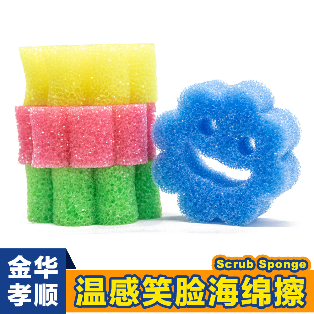 温感スマイリーフェイス食器洗いスポンジ、キッチン掃除、食器洗い、鍋洗い用品、たわし、食器洗い布、温感スポンジブロック