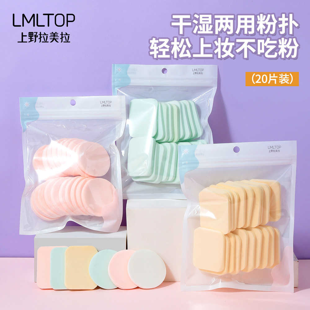 ラメラ20枚入りスポンジ化粧パフ干湿両用アップリケパフb0889円形パフ卸