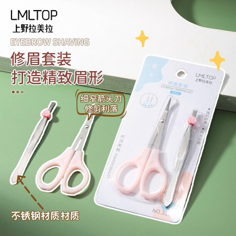ラメラ化粧修眉セットステンレス修眉ハサミ眉クリップ美装ツール2個セット卸売り3160