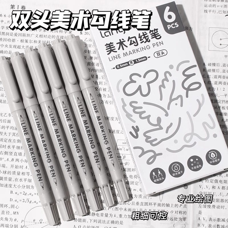 Languo 新しい黒双頭フックペンマーカーペン小学生フックライン絵画セットハンドブックペンアートスペシャル