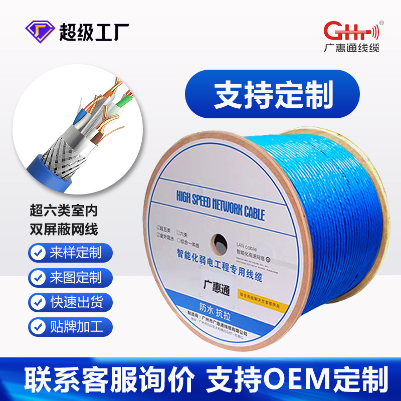 工場は超五類のダブルシールドケーブルsftpcat5e 8芯無酸素銅poe監視工事ネットワークケーブルをカスタマイズした
