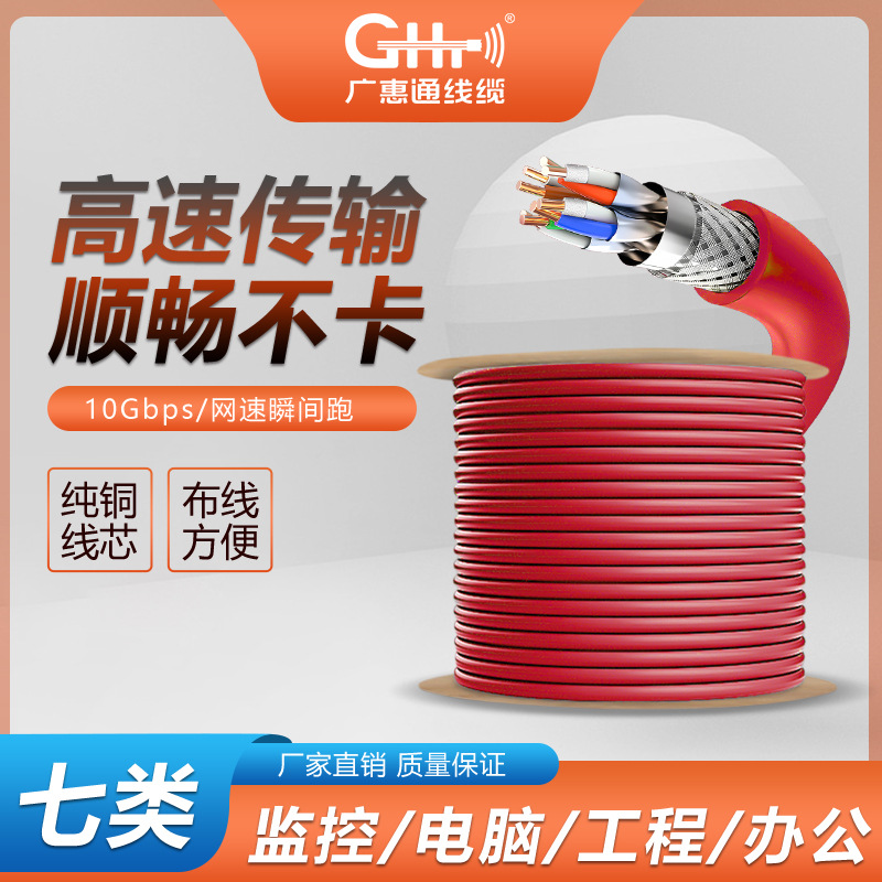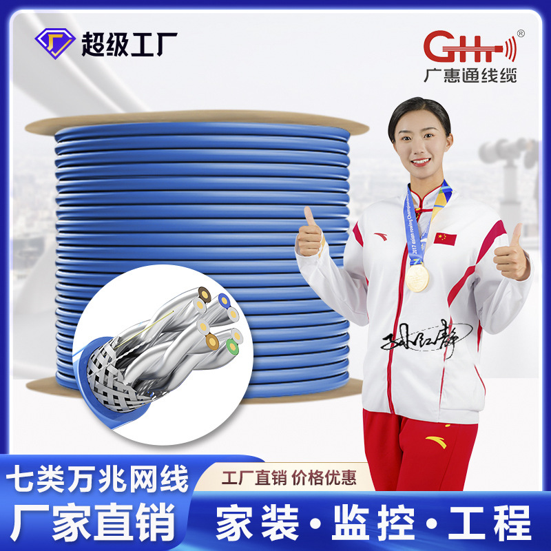 広恵通七類万兆ネットワークケーブルcat7ダブルシールド無酸素銅高速工事家庭用監視パソコン300メートル