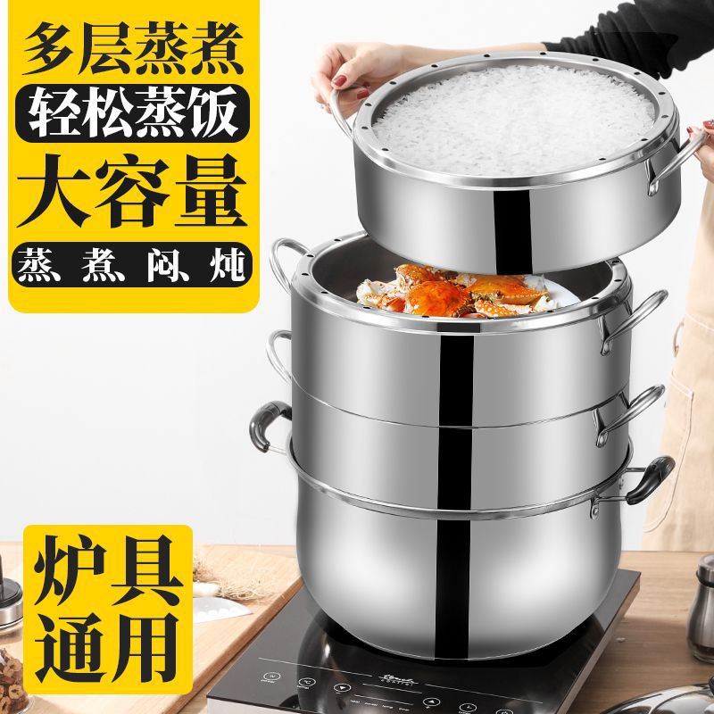 中実の厚いタイプの蒸し器の家庭用ステンレスの二、三、四階の穴がないので、味を合わせないで蒸します。