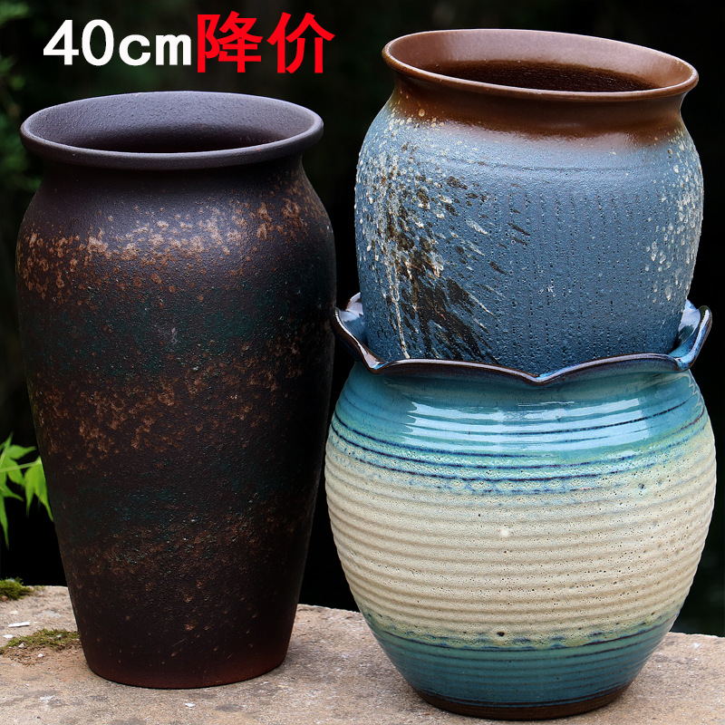 特価在庫一掃陶磁器植木鉢大サイズ月季三角梅緑植盆栽盆高筒粗陶缶大口径卸売り