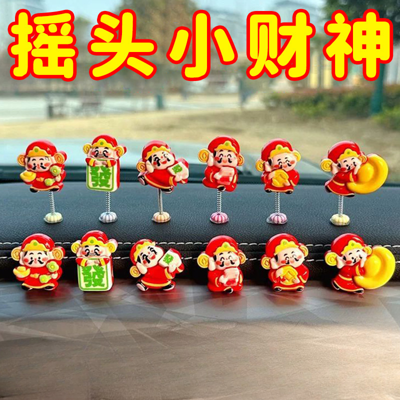 2025新型の財神爺は車の上でかわいいアニメの置物を飾っています。