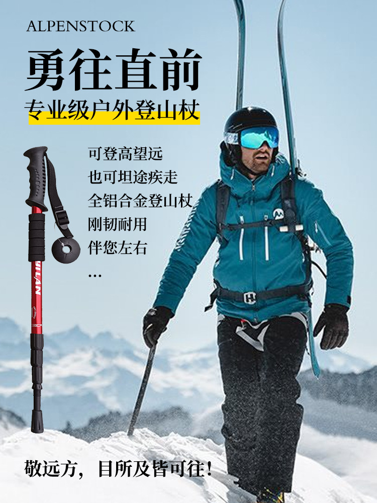 専門屋外登山杖伸縮折り畳み多機能防身棒男女型児童登山杖軽量杖