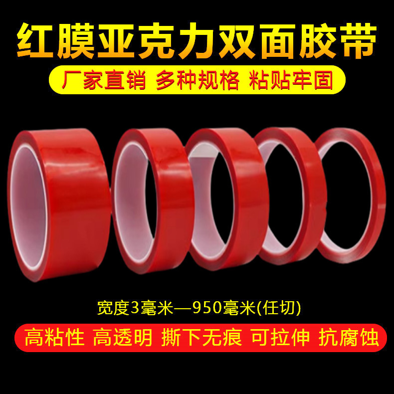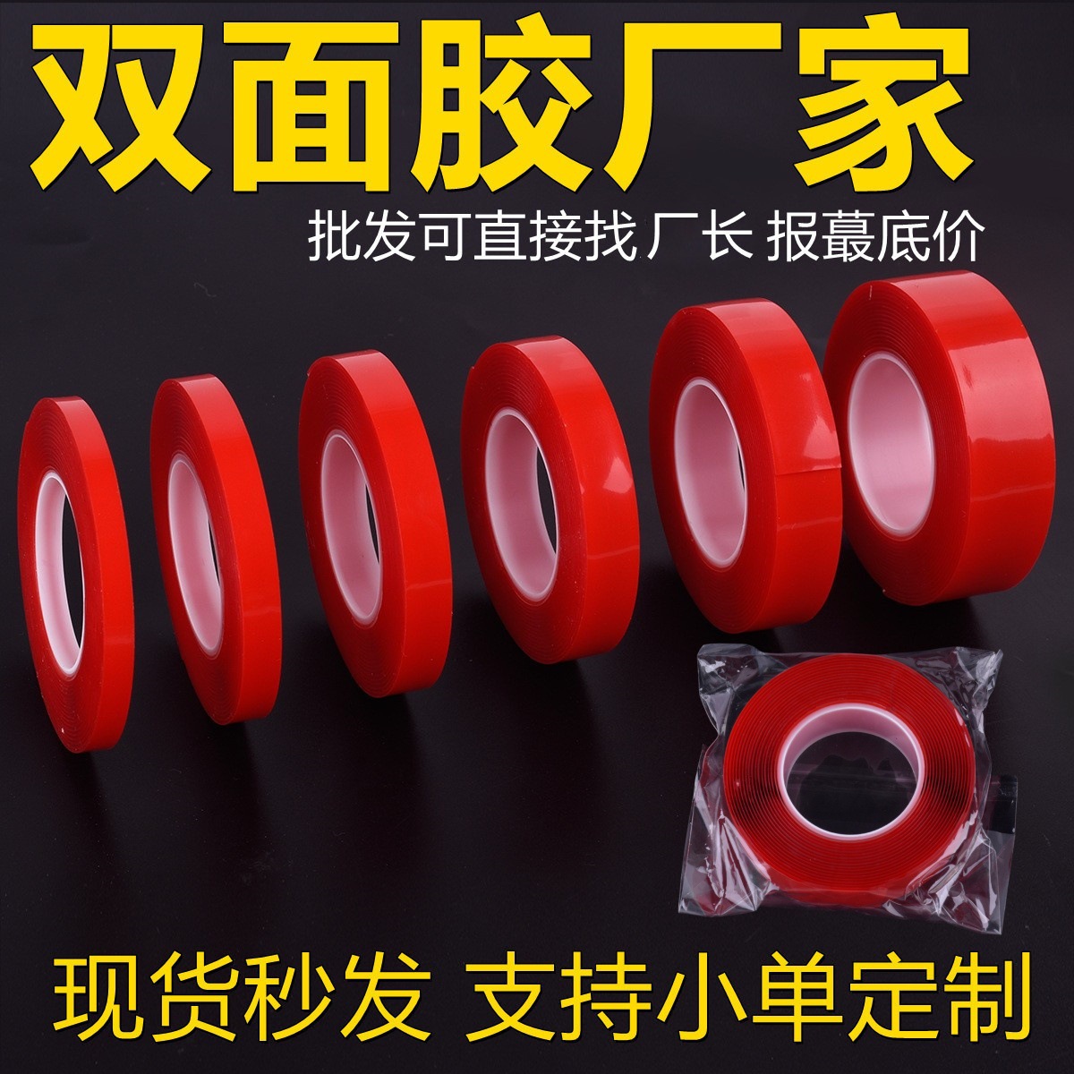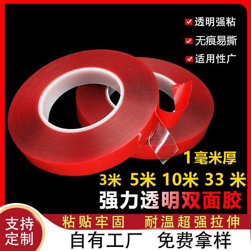 厚さ1ミリメートルpet赤膜両面テープ10ミリメートル幅工业テープ装饰固定両面アクリルテープバッチ