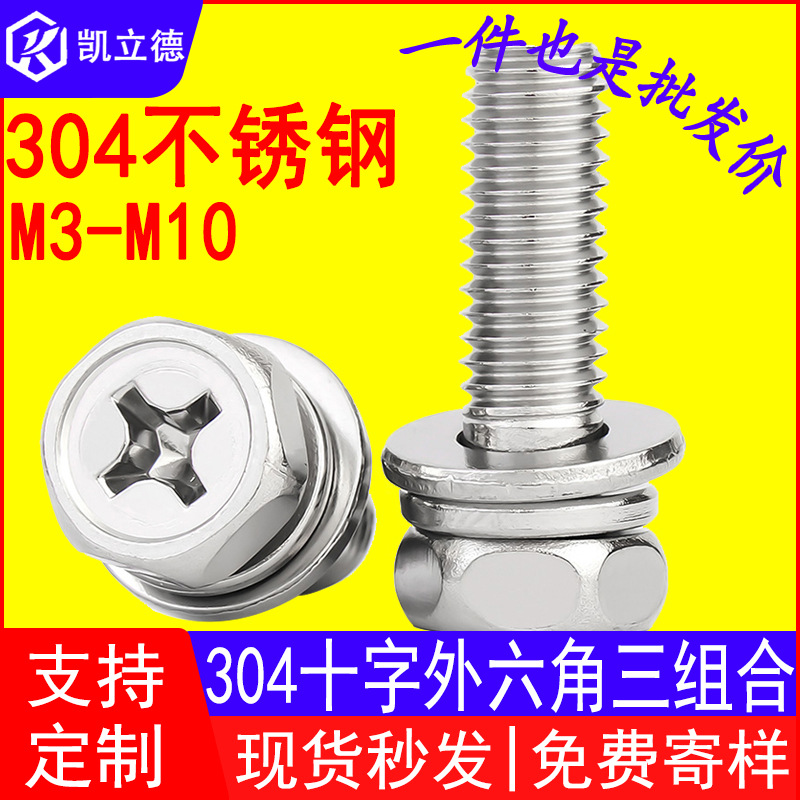 304ステンレス十字溝六角凹穴機ねじ平弾パッド組み合わせねじm3m 4m 5m 6