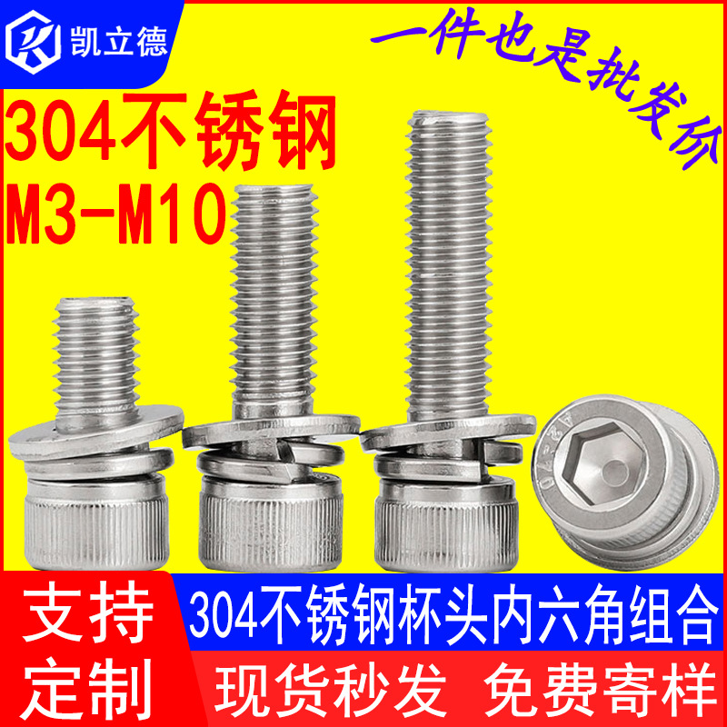 304ステンレス内六角組み合わせねじ円柱頭三組み合わせ平弾マットねじm 5 _ m 6 _ m 8 _ m 10