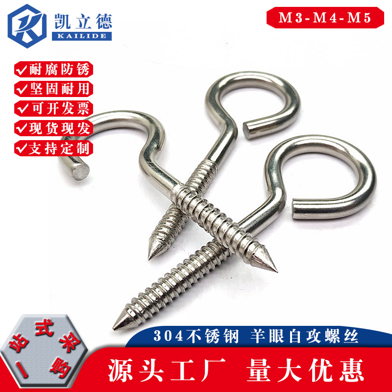 304 ステンレス鋼の羊の目タッピングネジフック付きリングネジ M4 M5 羊の目ネジ
