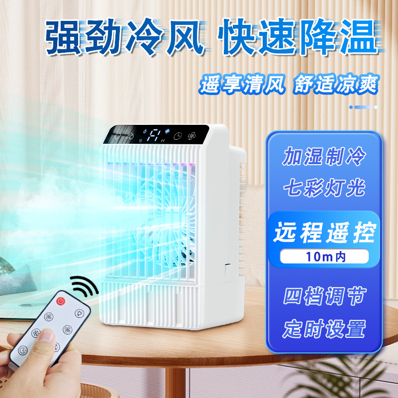新型クロスボーダー冷風機オフィス寝室デスクトップスプレー小扇風機家庭用リモコン小扇風機エアコン扇風機