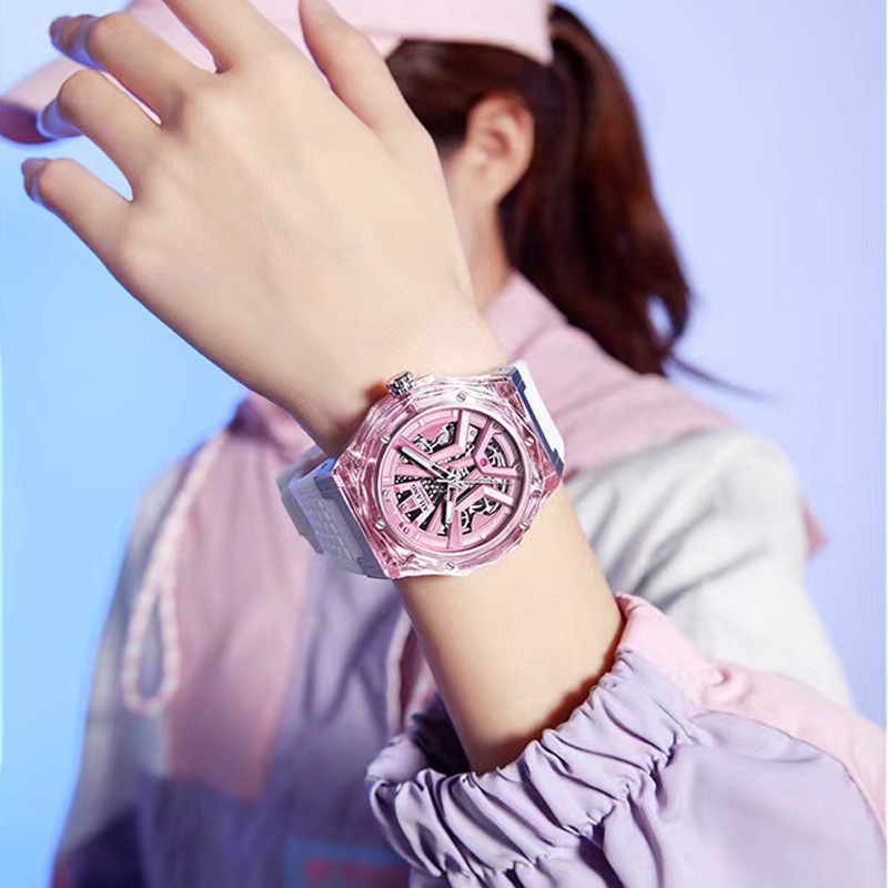 2024艾波透明ゼリー概念全自動腕時計学生女子試験機械抜きシリコン腕時計女子