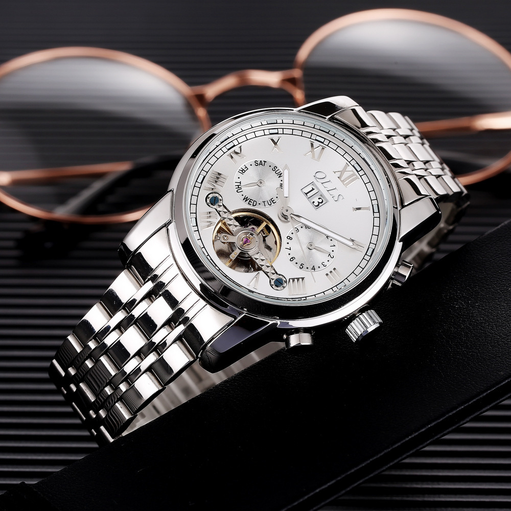 奇洛時の新型全自動機械時計男性時計鋼帯腕時計男性ファッションファッション夜光防水男性腕時計