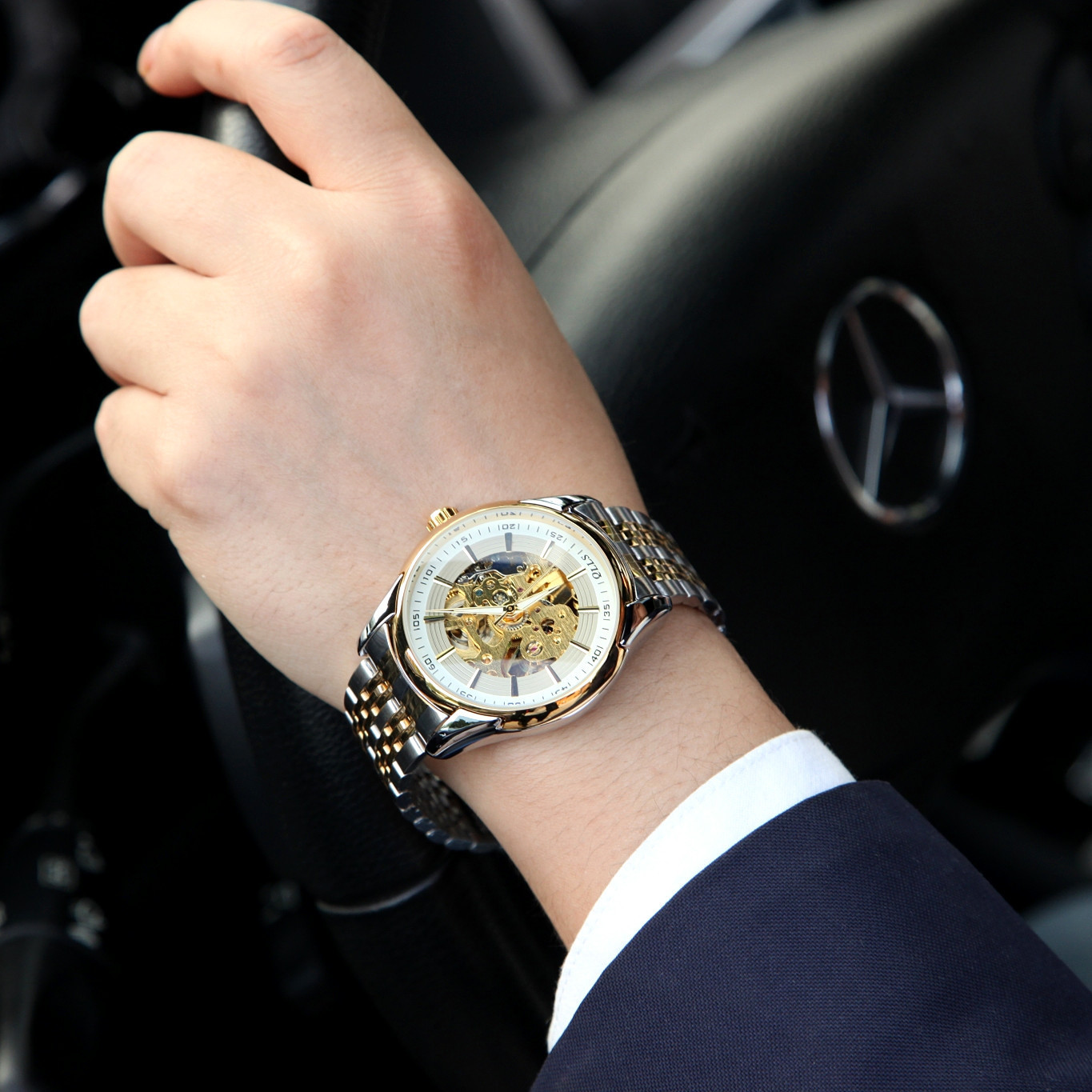 キノ時全自動機械時計防水透かし彫り鋼帯腕時計同型男性時計ファッションカジュアル透視表