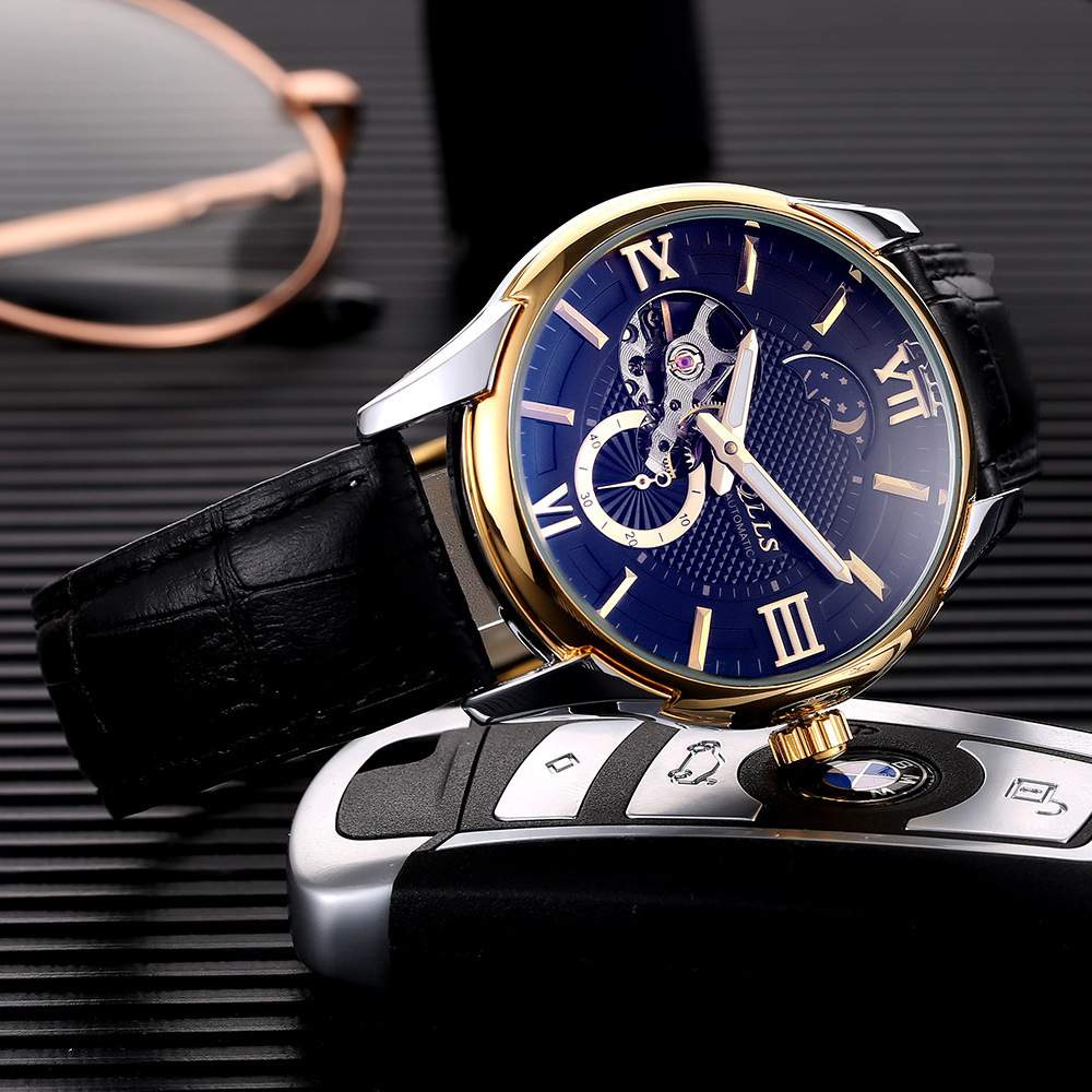 2023貝伊洛ビジネス男性モデル透かし彫り全自動機械時計レジャー青年防水底金色男性時計