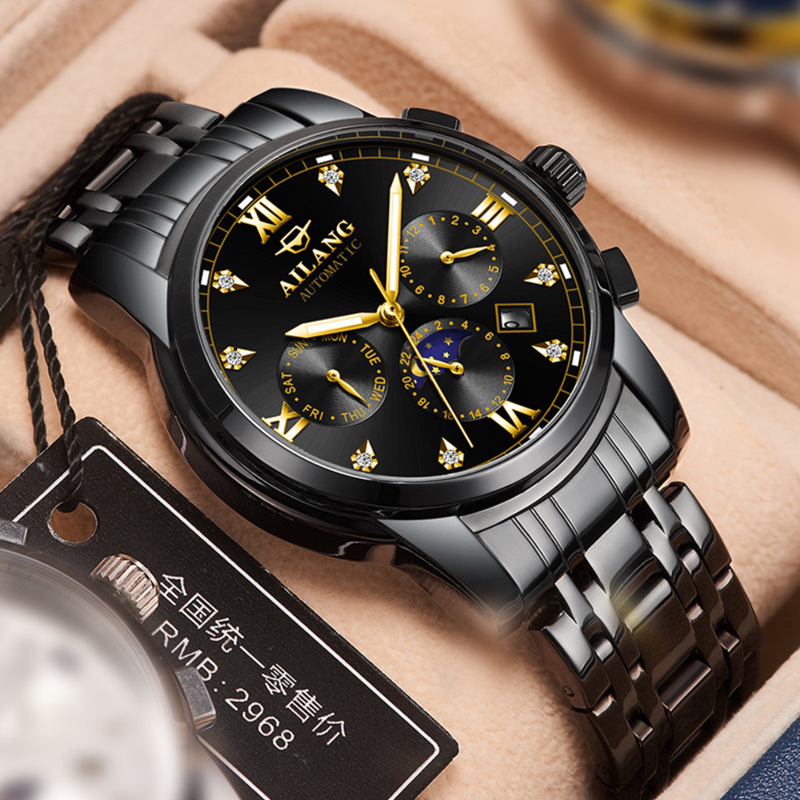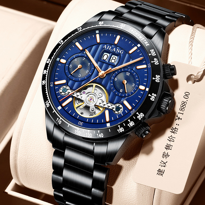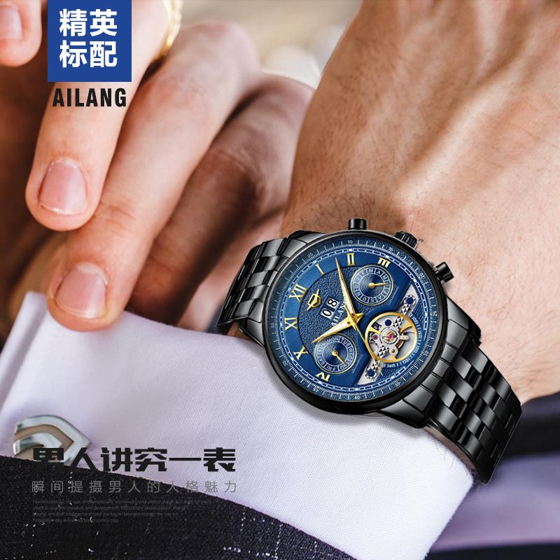 スイスailang艾浪メンズ腕時計ジャイロ全自動機械時計男性時計多機能精鋼帯防水