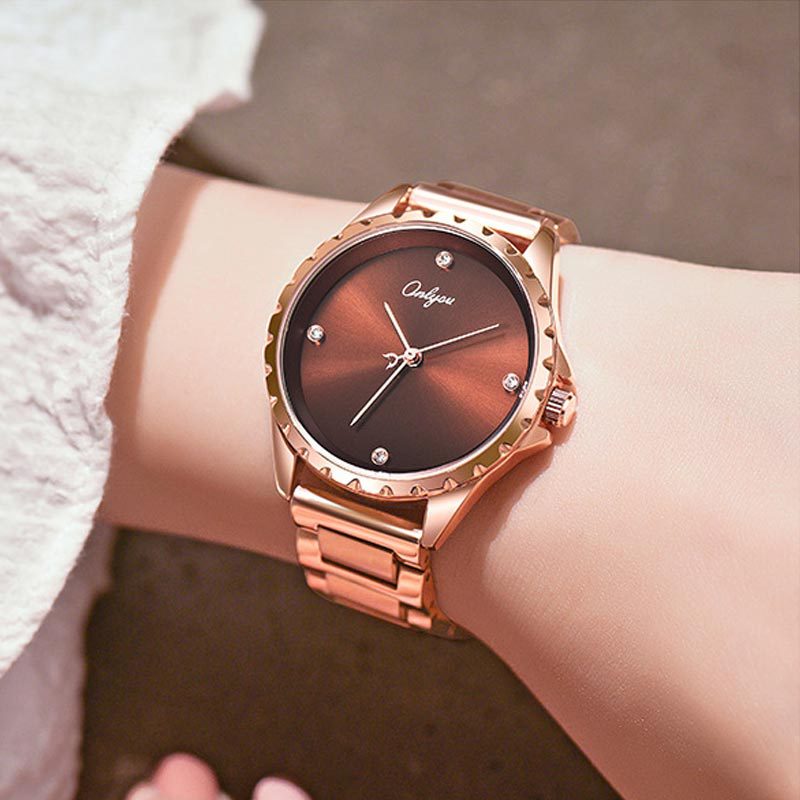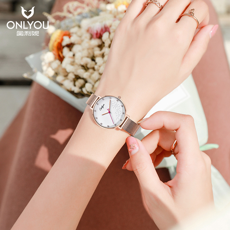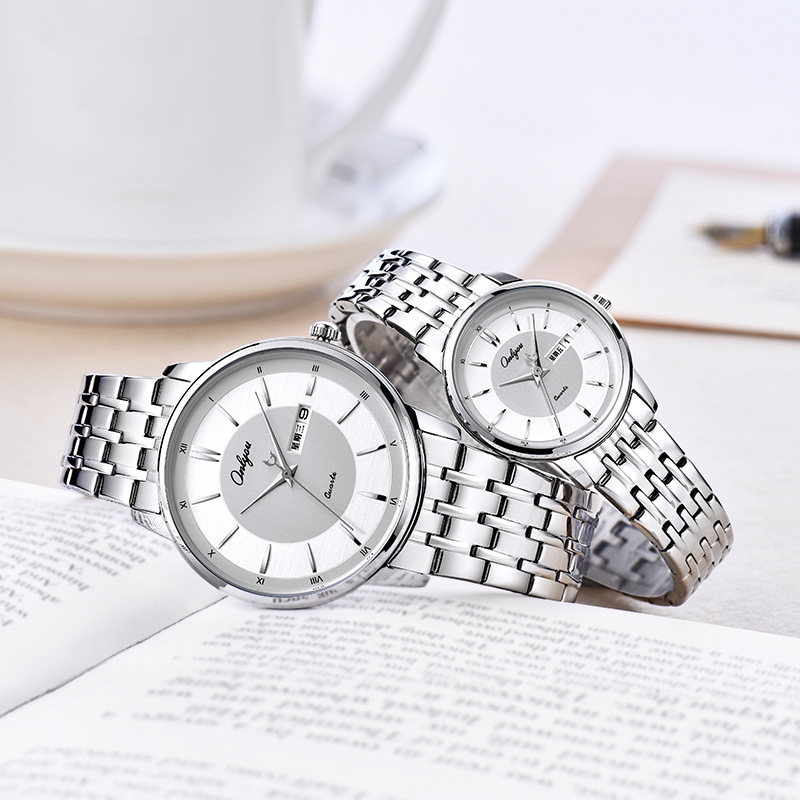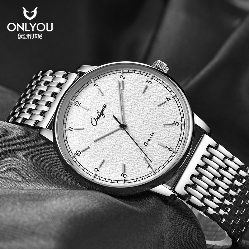 オリニ女性時計石英時計カップル時計ファッション防水ドリル精鋼学生時計鋼帯シンプルなカップル時計