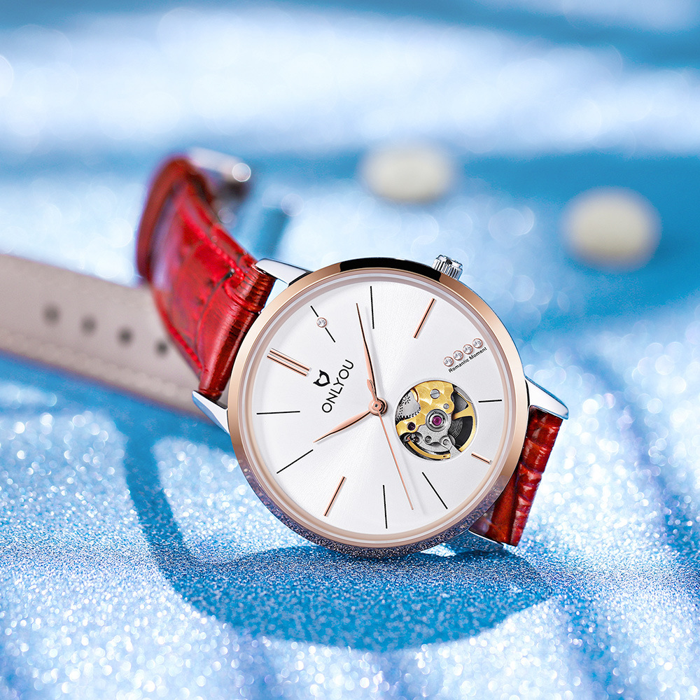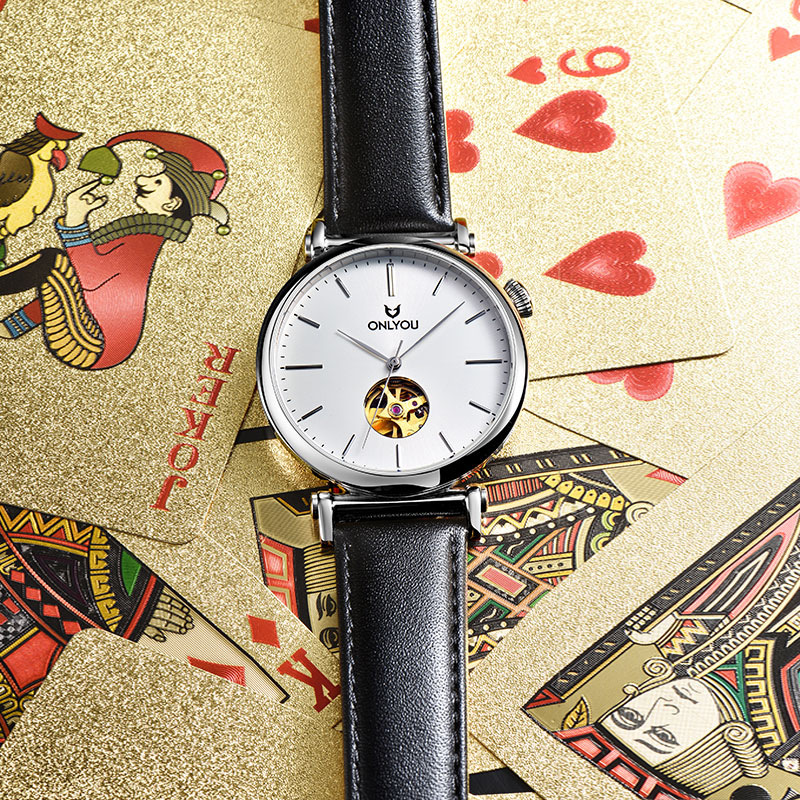 オリニの腕時計の女性の全自動機械の男性の時計の薄い金の透かし彫りのファッションのベルトのカップルの腕時計の女性
