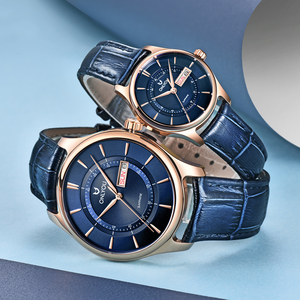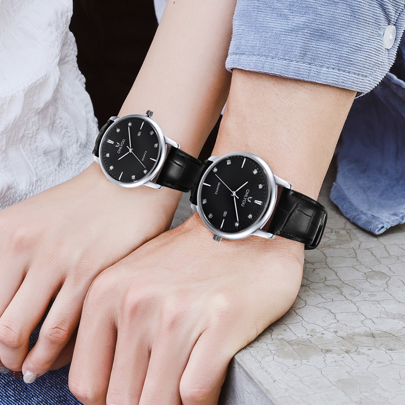 オリニカレンダーファッションカップル時計女性男性時計シンプルなサファイア鏡面ベルト学生カップル腕時計