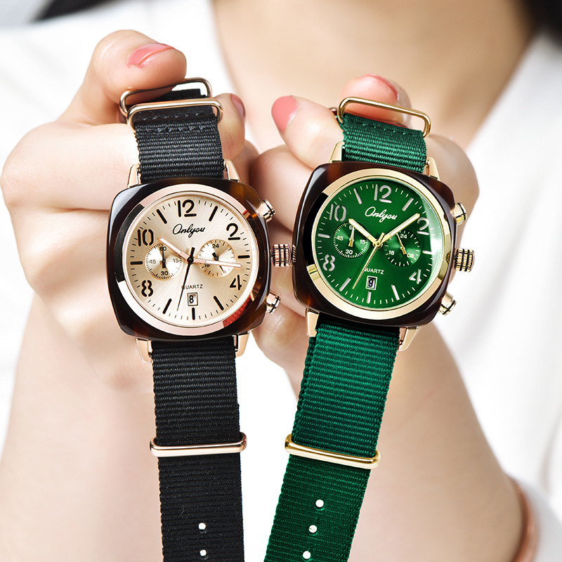 新しいオリニ腕時計の女性ネットの赤い布はファッションの潮流の防水の大きい文字板の多針の石英の女性の腕時計を持ちます。