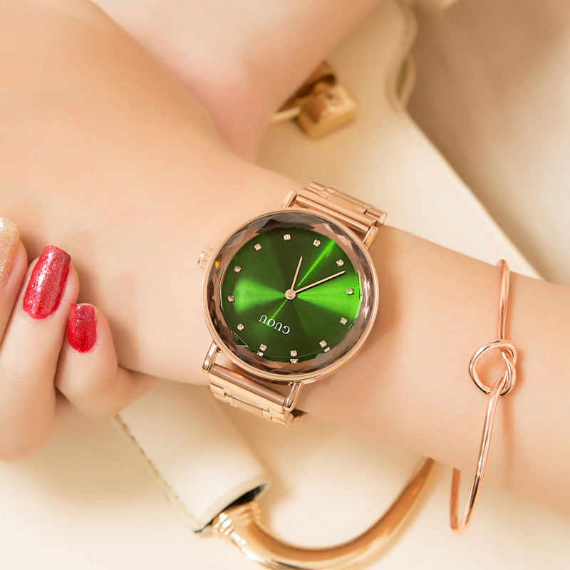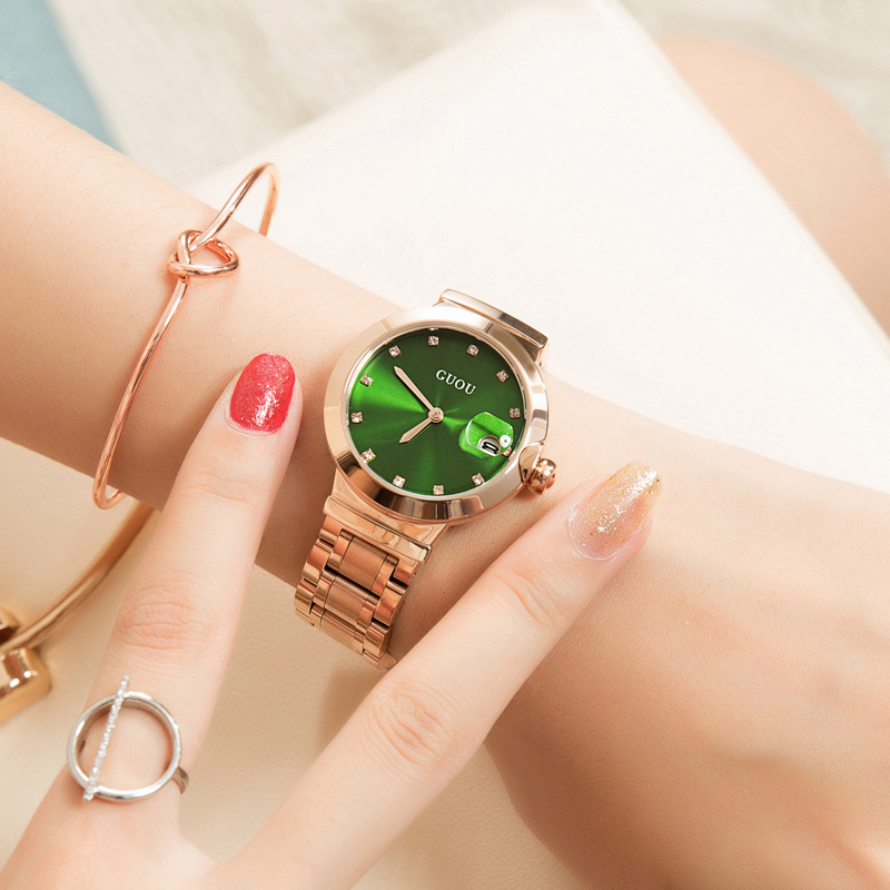 Guouラインストーンレディース時計クォーツ時計ファッショントレンドレディース腕時計韓国風シンプル大気スチールベルトレディース時計防水