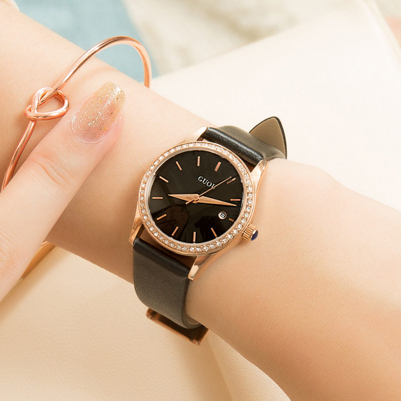 Guouさんの腕時計の防水ファッションの新しいファッションの学生の韓国版の簡単なレジャーの大気はダイヤモンドの防水の女性の時計を入れます。