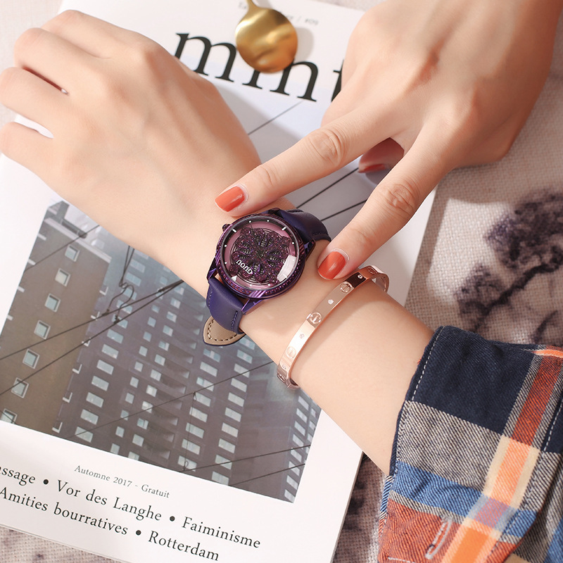 Guou腕时计レディースファッショントレンド防水个性欧米大気回転腕时计クォーツ革ベルト腕时计新品