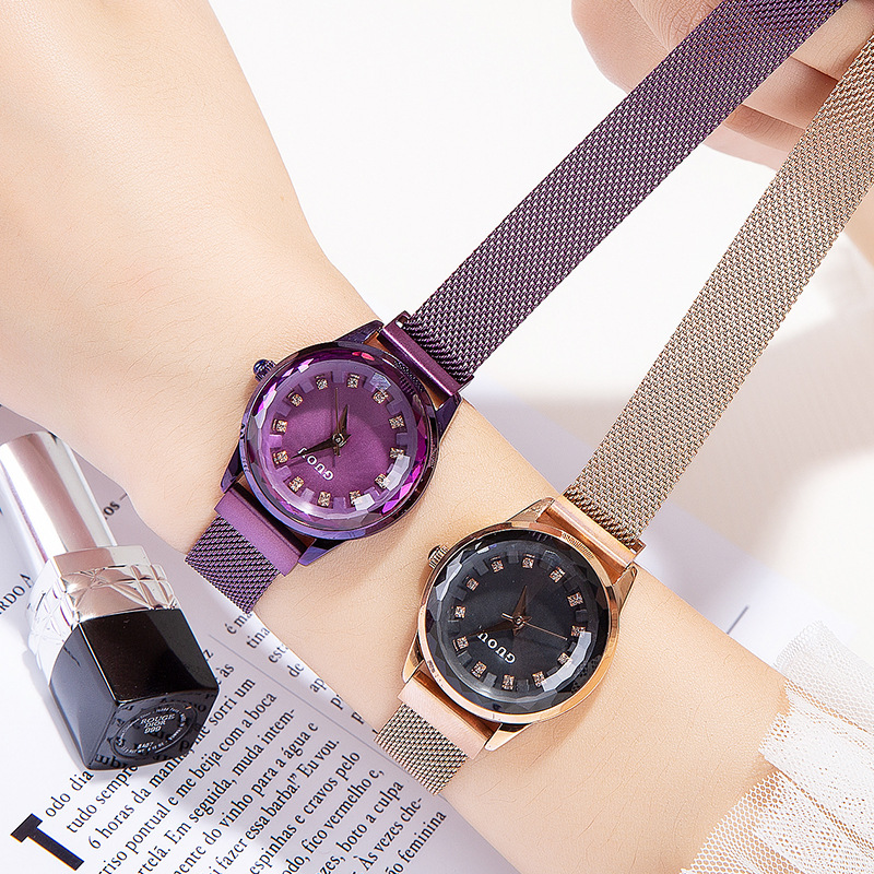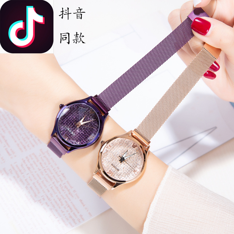 Guou吸鉄石腕時計女性震え音星空磁石バンドネット赤怠け者ファッション気質レディース学生時計