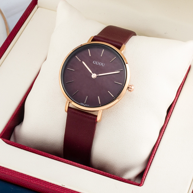 Guou腕时计レディース学生韩国语シンプルカジュアルファッショントレンド防水インスタ风ベルトクォーツ女性时计