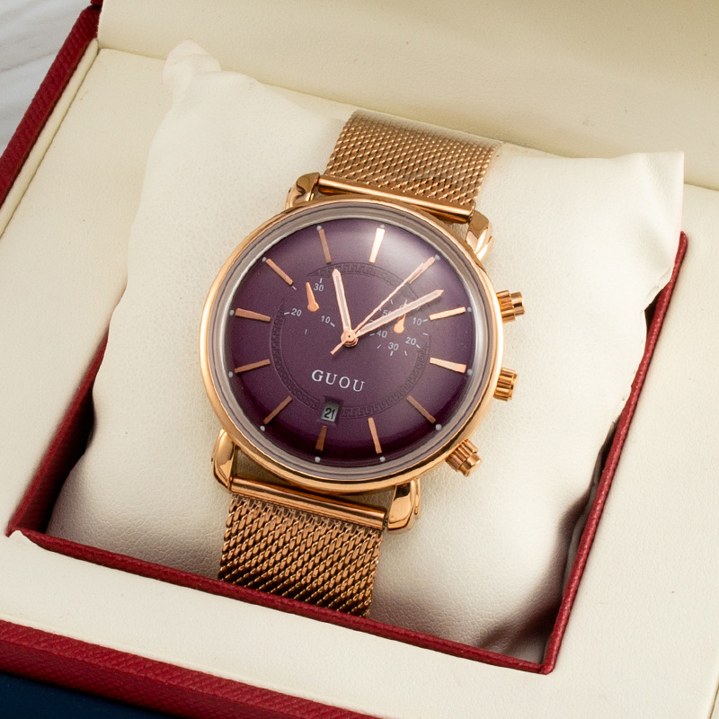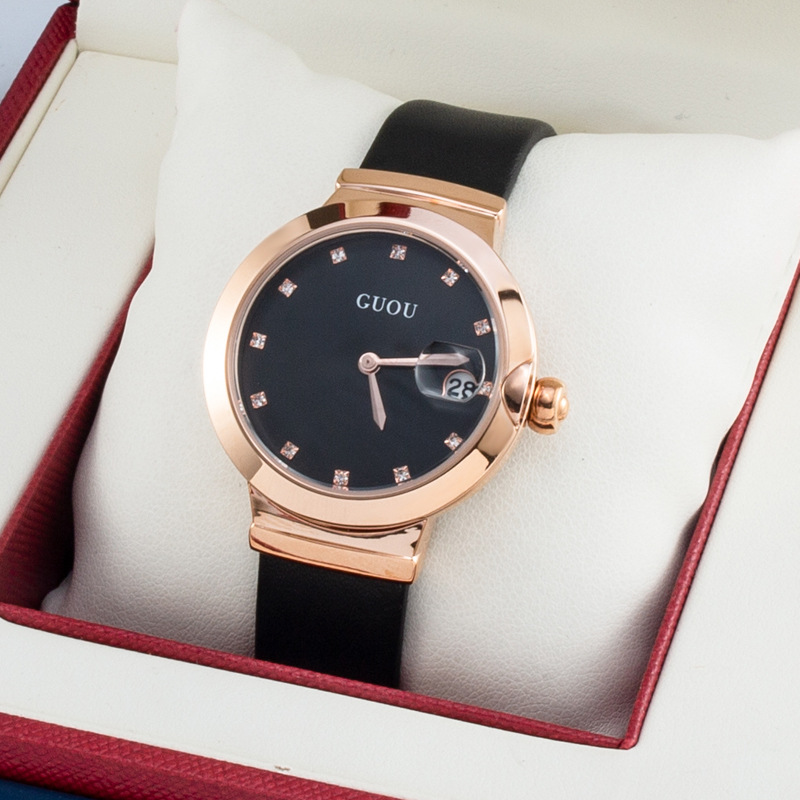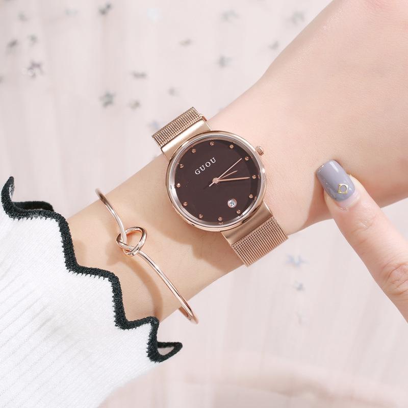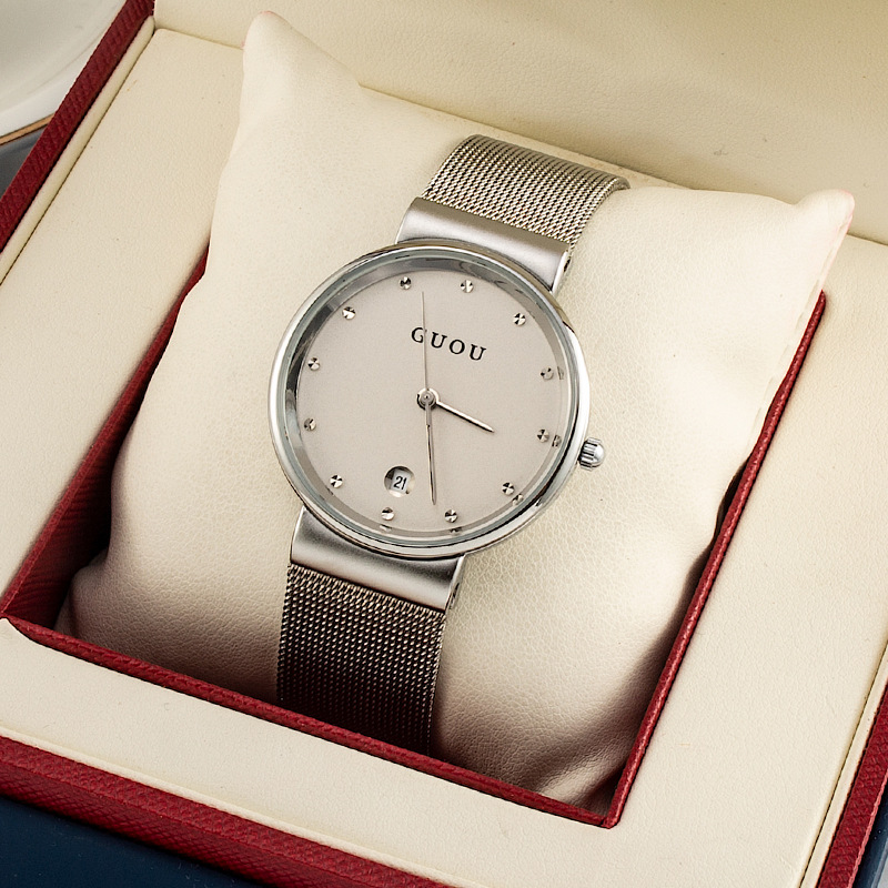 古欧guou新商品ファッションカレンダー石英女性時計シンプル文字板防水鋼帯気質腕時計カジュアル腕時計
