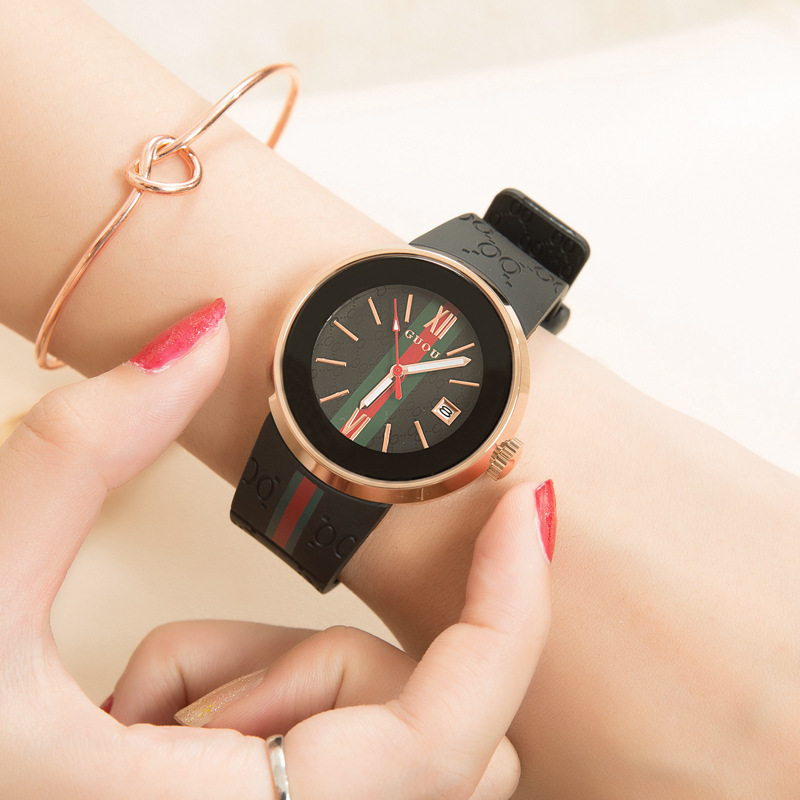 古欧guou新型ファッションカレンダー石英女性時計大文字板防水気質多機能腕時計カジュアル腕時計