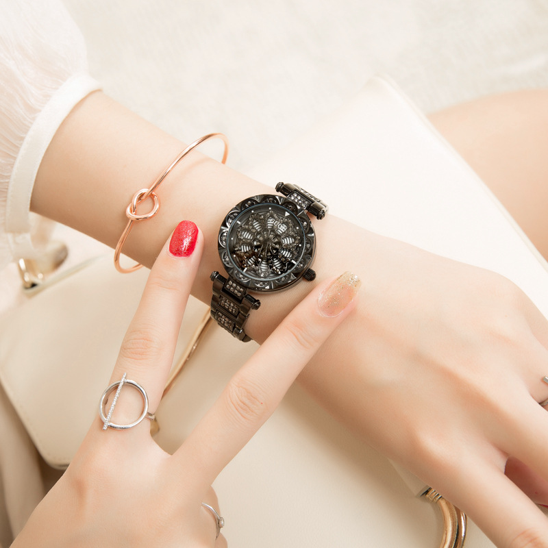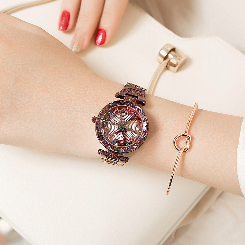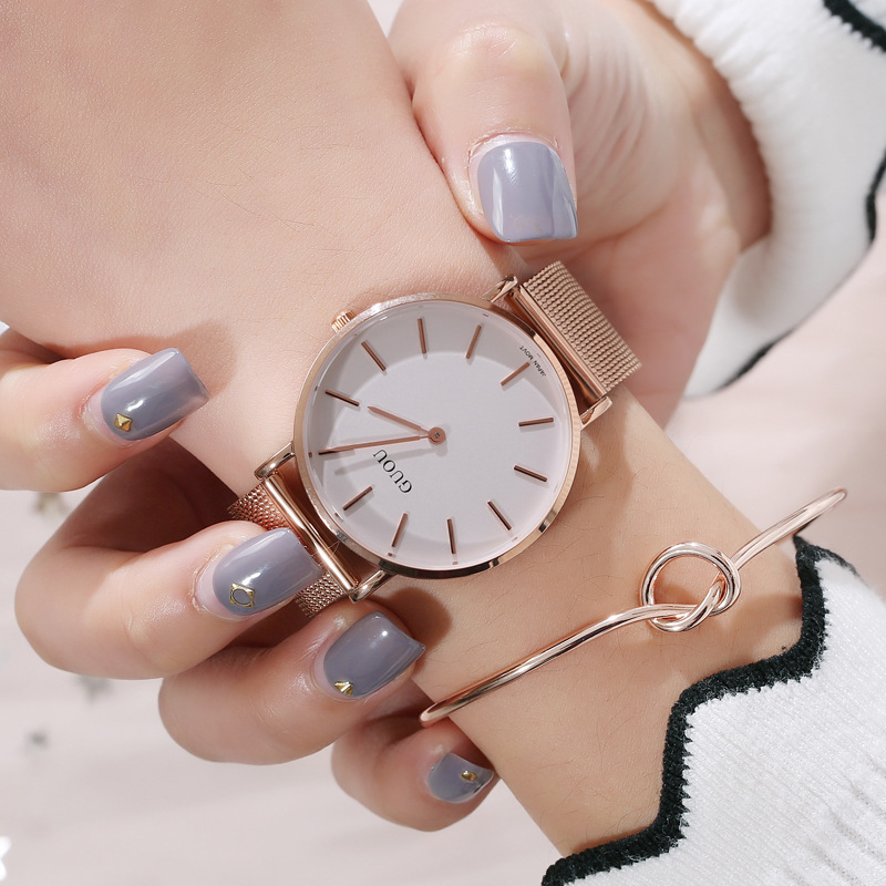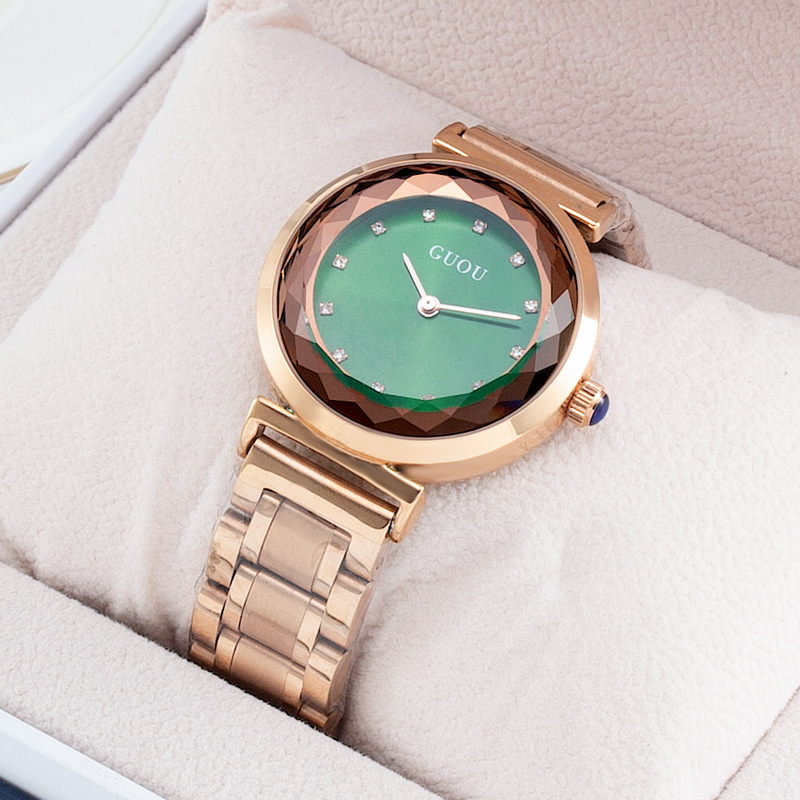 Guouロータリー腕时计レディースファッションレディース腕时计トレンドレディース腕时计スチールストラップシンプルなレディース时计
