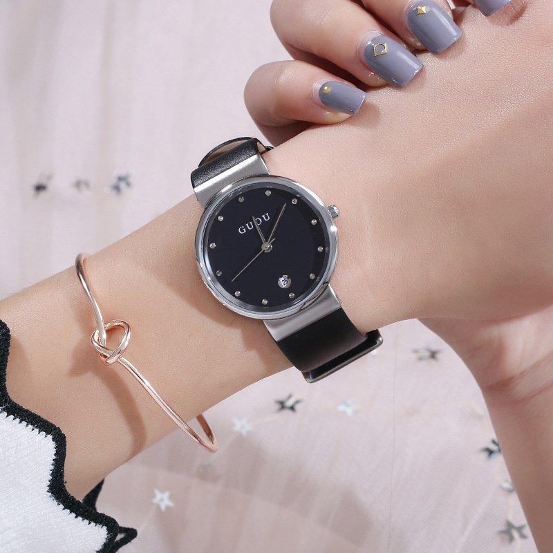 古欧guou腕时计レディースファッショントレンドシンプルベルト防水腕时计レディース森系カレンダーフレッシュクォーツ时计