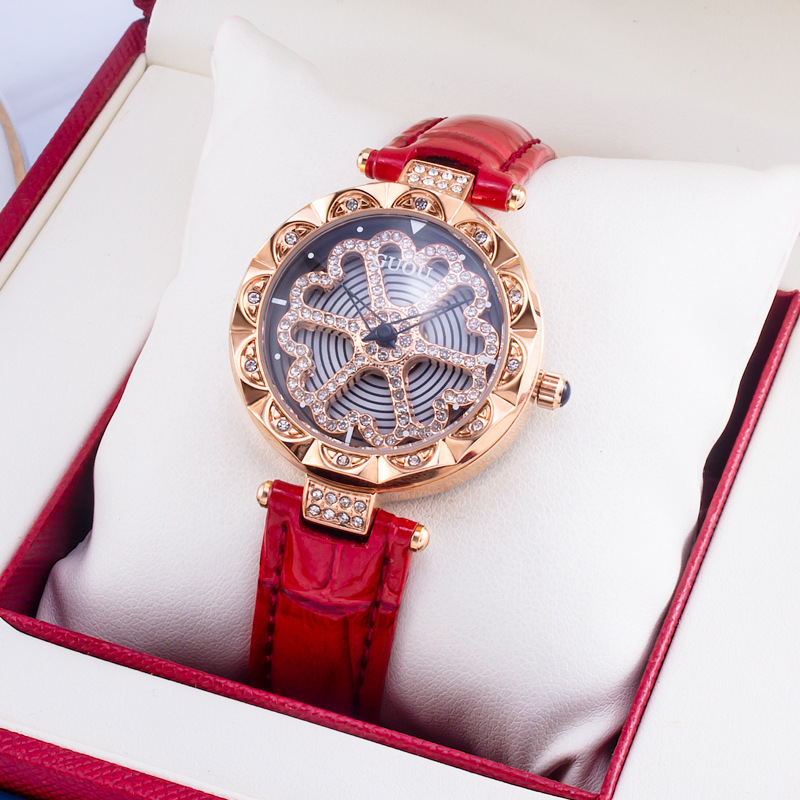 Guou古欧ファッション美しい水ドリル回転文字板石英防水女性ベルト腕時計カジュアルファッション時計