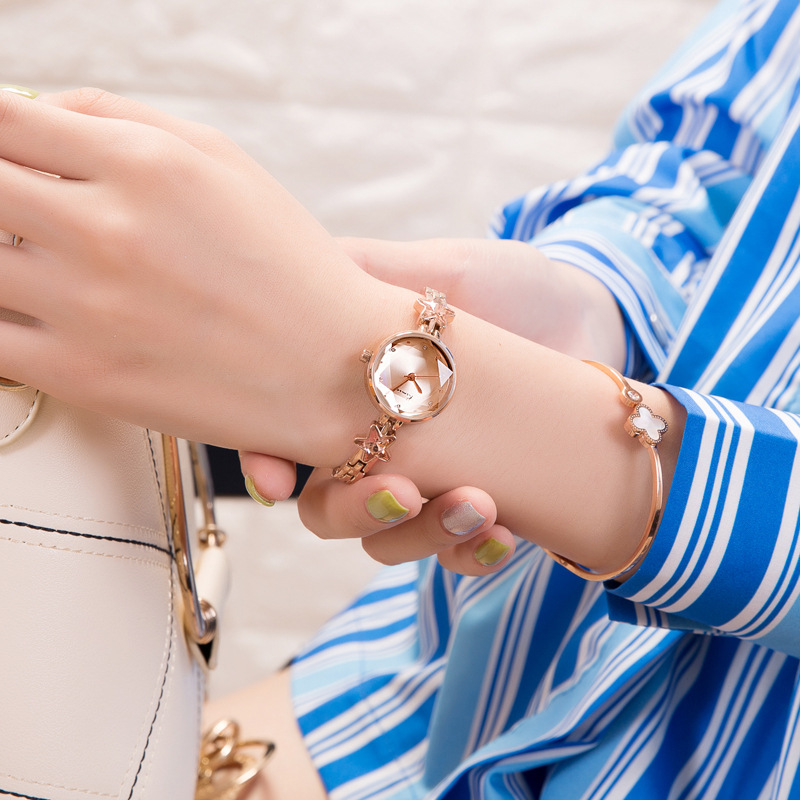 Guou腕時計女性シンプル女性モデル精鋼時計女子学生学院風菱形鏡面鋼帯女性石英腕時計