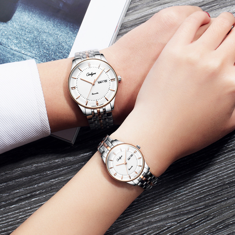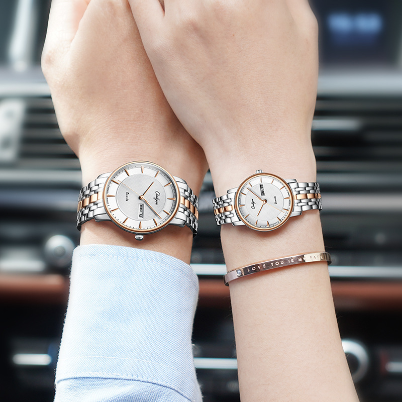 オリニ新商品カップル腕時計ペア新型スチールベルトファッション薄タイプシンプル男性女性ビジネス彫刻防水