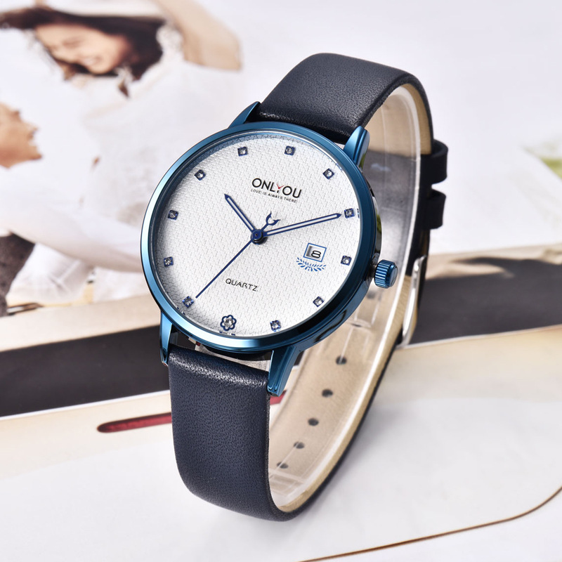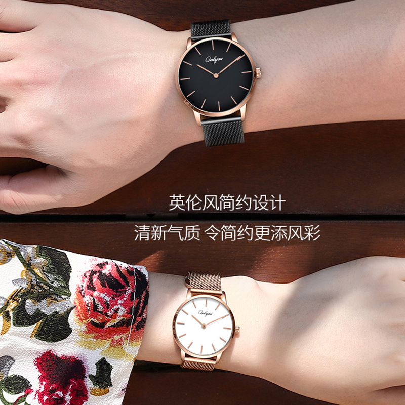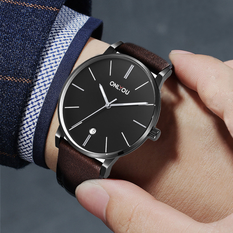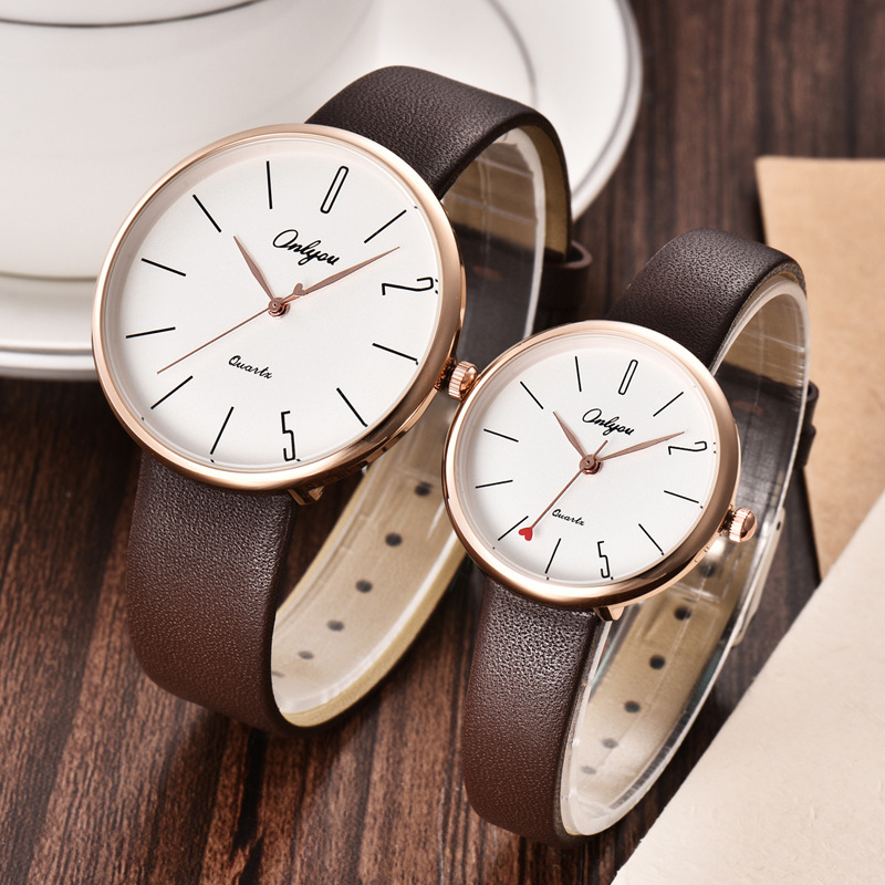 オリニ新商品カジュアル腕時計男性用薄手大文字板ベルトクォーツ時計学生用女性時計カップル時計男性用時計