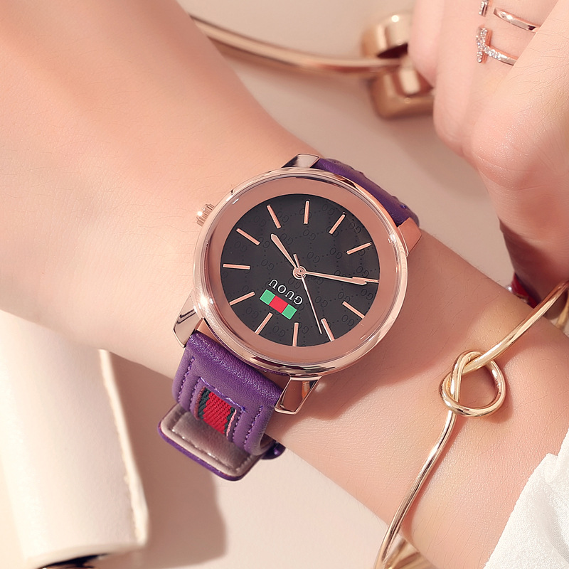 2020古欧guou腕時計ファッションシンプルベルト女性時計円形石英時計速売通代理ファッション時計