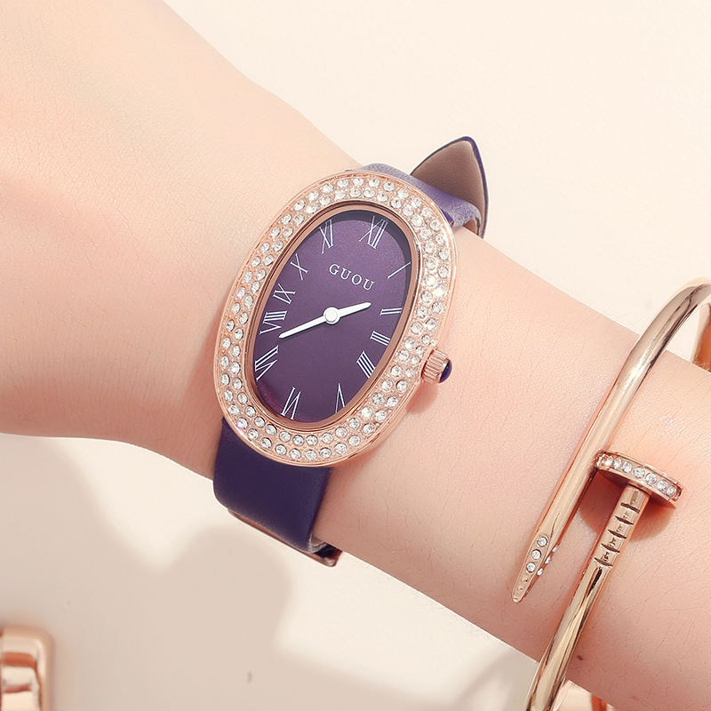 新しいguouファッション楕円形のドリルの文字板の女性の腕時計のファッションのカジュアルなベルトの腕時計の卸売りの女性のタイプ