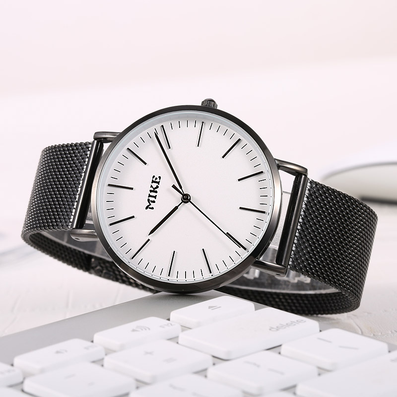 マイク社会人シンプルなネットは男性腕時計の薄い非機械石英時計防水学生男性腕時計を持っている