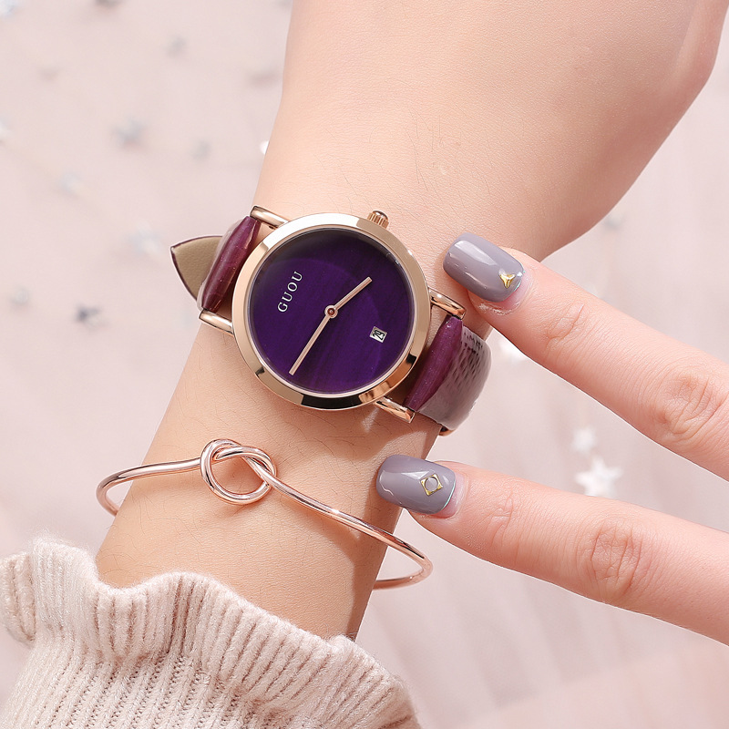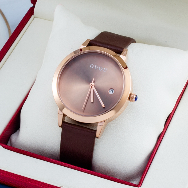 新商品古欧guou自慢ファッションカレンダー腕時計シンプルベルト女性防水油光ファッション腕時計卸売り