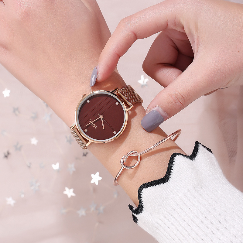 マイク/米可新品ネットチェーン大気シンプル薄い文字板防水ダイヤモンド防水ファッション石英腕時計