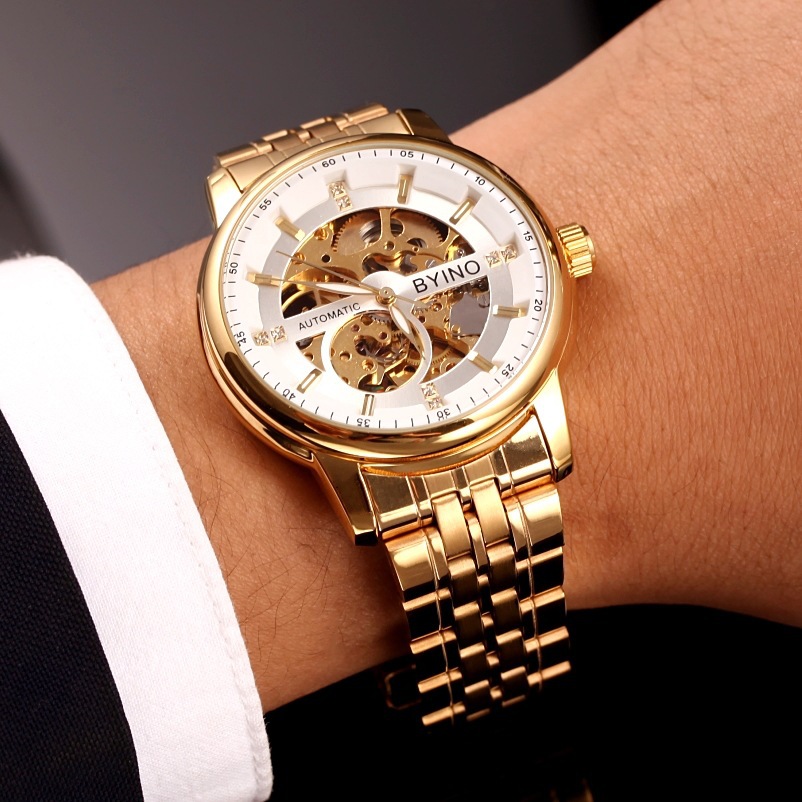 Byino腕時計男性全自動機械時計透かし彫り防水カジュアルファッション鋼帯男性腕時計卸売り販売