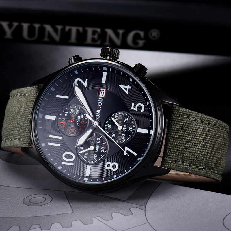 オリニの新型スポーツ腕時計キャンバスはカジュアルファッションの学生男性時計のデジタルカレンダーを持っています。