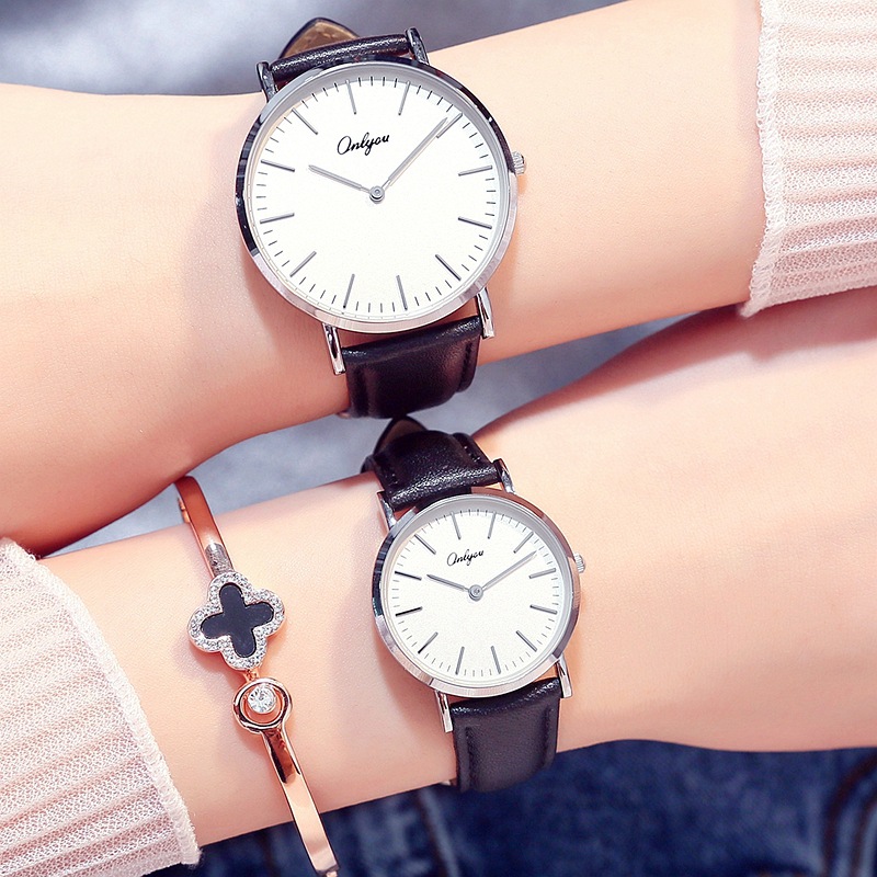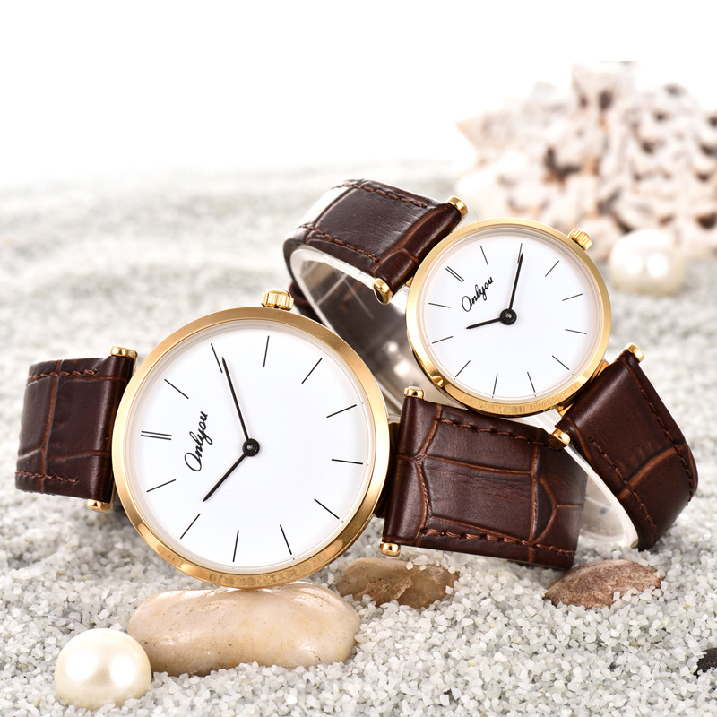 Guou香港古欧カップル対時計ファッションシンプルな大気ベルトクォーツ腕時計学生ベルト腕時計女