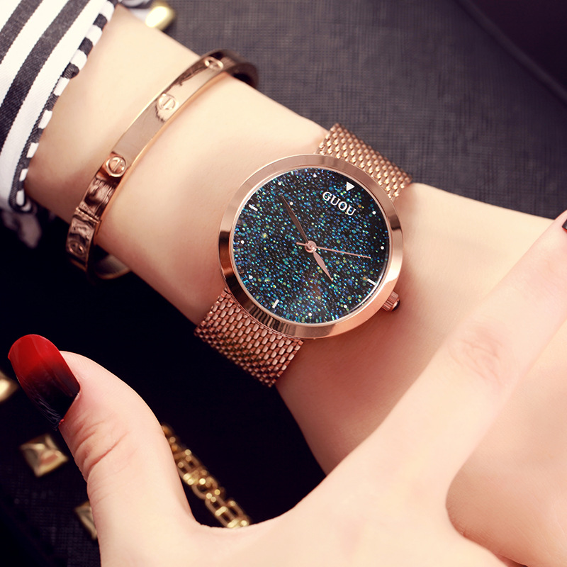 新型古欧guou鋼帯腕時計レディースブルー防水ファッション満天星空女時計vx代理卸売り
