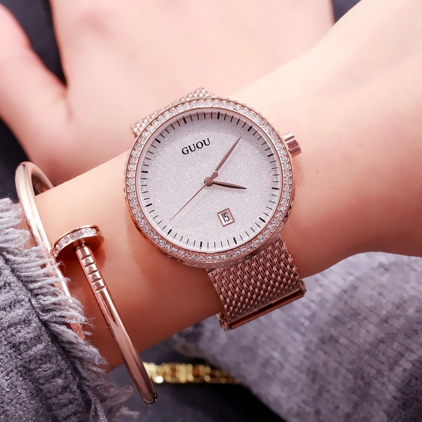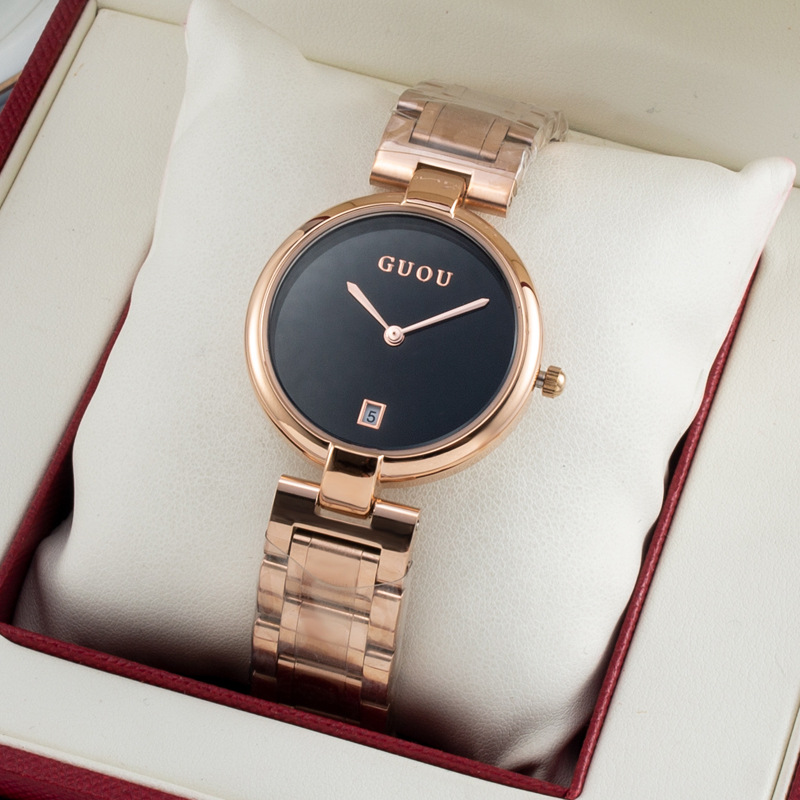 Guou古欧鋼帯腕時計ファッションクラシック石英大文字板鋼帯腕時計バンドカレンダーシンプル女性時計卸売り